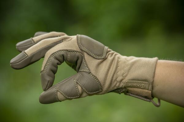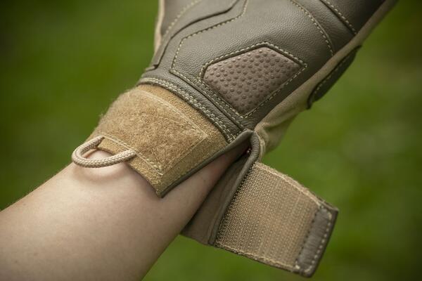 - Spezielles Zeigefingerdesign mit überstochener Naht auf dem Handrücken für eine reaktionsfreudigere Waffenkontrolle und längere Lebensdauer des Handschuhs.