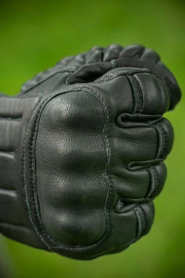 - Speciální systém anatomicky členěných výztuh z kozinkové usně na hřbetu rukavice s protiúderovou výplní.