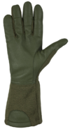 - Handrücken: Ziegenleder mit hydrophober und flammenhemmender Ausrüstung. Bedeckt freiliegende Bereiche vor Abnutzung und verlängert die Lebensdauer der Handschuhe.