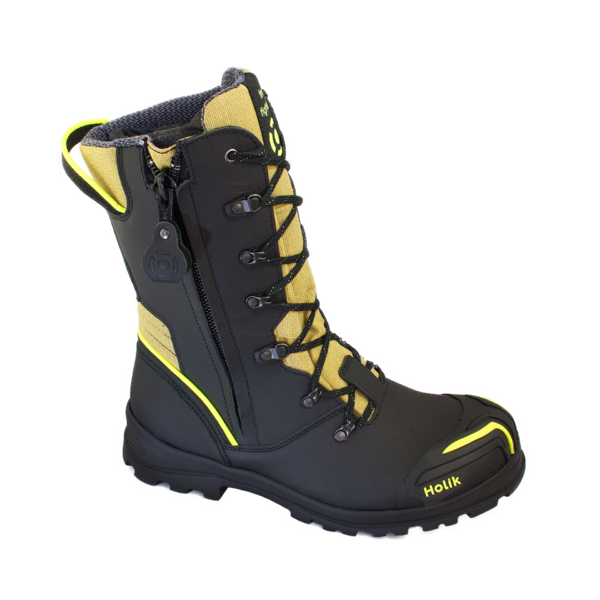 Neues Modell aus der COMFORT LINE Generation des Modells Zlin. Das Modell ist in einer Kombination aus hydrophoben Ledermaterialien und textilen feuerfesten Materialien, die für die Herstellung von Feuerwehranzügen verwendet werden. Die textilen Elemente ermöglichen eine größere Flexibilität. Die gesamte GII-Linie verfügt über eine einzigartige Sohle mit einem ausgeklügelten, selbstreinigenden Profil und hoher Strapazierfähigkeit.